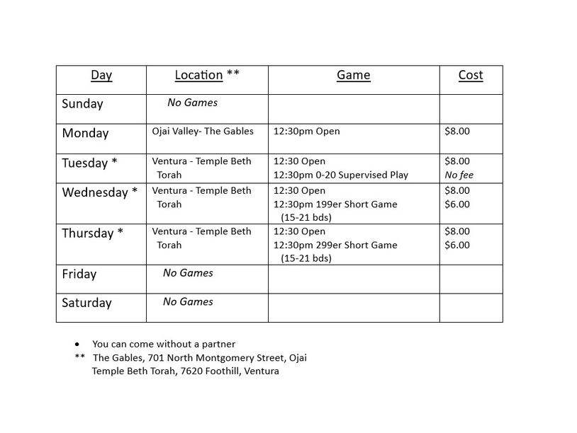 Our Ventura Club Guaranteed Partner program means you can just show up as a single at any Ventura Club Game and play. No reservation needed, but please arrive at least 10 minutes before game start time.